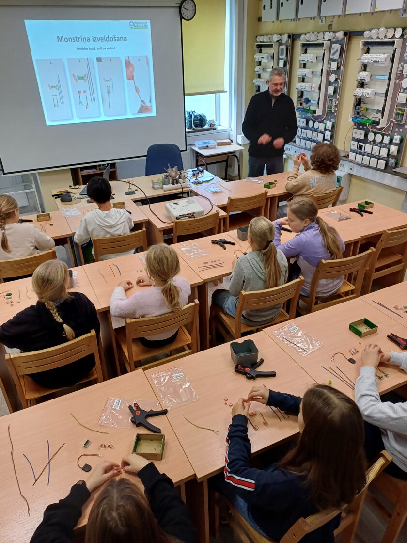 Ziņa: STEM skolas somā mācām elektroenerģijas pamatus un izveidojam monstriņu