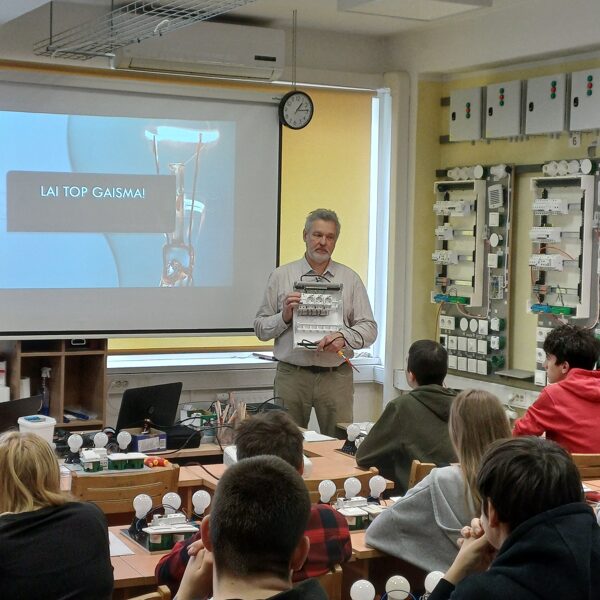 Ziņa: Elektrības tēmas rullē - praktiskās nodarbībās piedalās jaunieši no Pļaviņām un Jūrmalas